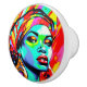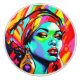 Ein atemberaubendes Pop-Kunstporträt einer selbstbewussten Frau, die in einem lebendigen, gemusterten Kopfbedeckung und fetten Ohrringen geschmückt ist. Dieses afrozentrische Kunstwerk besticht durch Farbe, Stil und Persönlichkeit - eine Mischung aus kulturellem Ausdruck und moderner digitaler Kunst. Ideal für Wandkunst, Bekleidung und Ausstattungsartikel.