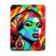 Ein atemberaubendes Pop-Kunstporträt einer selbstbewussten Frau, die in einem lebendigen, gemusterten Kopfbedeckung und fetten Ohrringen geschmückt ist. Dieses afrozentrische Kunstwerk besticht durch Farbe, Stil und Persönlichkeit - eine Mischung aus kulturellem Ausdruck und moderner digitaler Kunst. Ideal für Wandkunst, Bekleidung und Ausstattungsartikel.