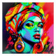 Ein atemberaubendes Pop-Kunstporträt einer selbstbewussten Frau, die in einem lebendigen, gemusterten Kopfbedeckung und fetten Ohrringen geschmückt ist. Dieses afrozentrische Kunstwerk besticht durch Farbe, Stil und Persönlichkeit - eine Mischung aus kulturellem Ausdruck und moderner digitaler Kunst. Ideal für Wandkunst, Bekleidung und Ausstattungsartikel.