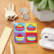A playful celebration of color, texture, and repetition, this design presents a quartet of stylized curling stones rendered in a bold, painterly pop-art style. Each stone sits within its own vibrant color field, swapping hues and combinations to create a rhythmic visual variation that feels both cohesive and dynamic. The thick, hand-drawn outlines and visible brush-like textures give the forms a tactile, almost folk-art warmth, while the simplified shapes and high-contrast palette lend a modern, graphic punch. The result is a lively, whimsical composition that captures the spirit of curling through a lens of cheerful abstraction and expressive color.