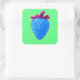Pop Art Strawberry Blue Quadratischer Aufkleber