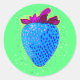 Hellblaue Erdbeere auf grünem Hintergrund im Pop Art Stil. Für zeitgenössische und Pop Kunstliebhaber.