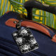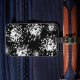 Eine Schwarzweißkreation einer weißen Blume. Dieses einzigartige Gepäckanhänger sollte leicht sein, Ihren Koffer bei der Gepäckausgabe zu identifizieren.