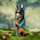 Pop Art Woman in Kopfhörern tanzen Trinkflasche