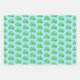 Dieses phantastische Packpapier zeigt ein grafisches Bild eines grünen Pea Pods mit 2 grünen Erbsen und einer großen blauen Erbse. Die große blaue Erbse hat ein niedliches kleines Gesicht mit Augen und einem Mund. Auf der anderen Seite des Pfods in dunkelrosa steht "Baby Boy Ready to Pop". Das Design ist ideal für eine Schwangerschaftsankündigung oder eine Babydusche. Im Hintergrund gibt es eine Gruppe von kleinen blauen Erbsen.