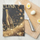 Pop Fizz Clink Midnight Gold Champagne Bubbles Geschirrtuch