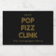 Machen Sie Ihr NYE Party unvergesslich mit diesen modernen Weinen aus schwarz und gold. Die Worte POP FIZZ CLINK sind in Imitat Gold enthalten. Es ist Zeit für ein Champagner-Fest! Sie können dieses Design personalisieren, indem Sie auf "Diese Vorlage personalisieren" klicken oder wenn Sie den Schriftart, die Hintergrundfarben ändern oder die Designelemente anders anordnen möchten, klicken Sie auf "Bearbeiten mit dem Entwurfswerkzeug".