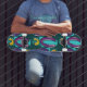 Mit diesem Skateboarddeck mit einem geometrischen Muster in lila, türkis und gelb fügen Sie Ihrer Fahrt eine fette grafische Touch hinzu. Inspiriert durch spielerische Pop-Kunst und abstrakte Formen, ist dieses Design perfekt für Skater, die einzigartige, farbenfrohe und auffällige Tafeln Liebe.