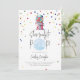 Bubblegum Baby Dusche Thema mit der Darstellung der blauen Blase in "ready to Pop" Text mit Abbildung der Gumballmaschine und Konfetti.