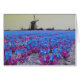Popart Windmühlen-blaue Tulpe-Feld-Gruß-Karte. Ein Fantasiefrühling lanscape mit blauen Tulpen stellen und Windmühlen auf der Horizont bunten Pop-Kunstkarte auf. Diese Karte popart Festival blauer Tulpe Hollands ist völlig kundengerecht, addiert Ihre Bilder und Texte!