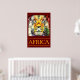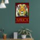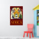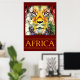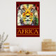 Sehen Sie Afrika ist hier das Thema, mit dem König der Tiere, einem wunderschönen königlichen afrikanischen Löwenportrait in einem kreativen und bunten Pop Kunststil auf einem dunkelroten Hintergrund und dem Landnamen unter dem Gold alle Caps Schriftart. Dies ist die perfekte Wandcreme für Büros, Hotels oder Ihre Zuhause. Afrika ist ein sehr beliebtes Urlaubsziel.