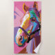 Die Farbtöne Rosa, lila und Braun vereinen sich in diesem lebendigen Pop-Kunstporträt eines wunderbar bunten Pferdes, das sowohl modern als auch modern ist.