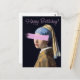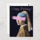 Pop Kunst Vintage Remix von Girl mit Perlenohr mit einem rosa Pinselstrich. Herzlichen Glückwunsch zum Geburtstag.
