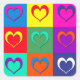 Pop-Kunstdarstellung mit Herzdekoration auf farbenfrohen Plätzen