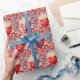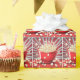 Popcorn, der aus einer roten Schüssel mit rot-weißer Sternexplosion gesprenkelt wird