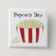 Ein lustiger Knopf zum Anziehen am 'Popcorn Day'! Eine große rote und weiße Schüssel voll mit frisch gepflastertem Popcorn.
