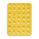 Dieses Design enthält gepoppte Popcorn-Kernel, die in einem gepflegten Gitter auf einem gelben Hintergrund angeordnet sind. Ein Kernel ist nur halb aufgetaucht.