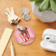 Niedlicher Mops Welpe in Retro Popcorn Disenser mit trüben rosa Hintergrund, gemalt von der Künstlerin Maryline Cazenave.