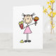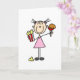 Strichmännchen Mädchen hat ihre Hände voll mit Popcorn und einem Karamellapfel.