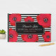 Blumenzettel mit roten Pappeln gegen schwarz-weiße Streifen. Personalisieren Sie mit Ihren Namen und Ihrem Hochzeitsdatum.
