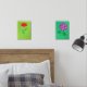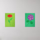 A wall art set of a poppy flower at the left and geranium flowers at the right.