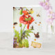 Ein bezaubernder Gnome schlängelt sich in eine große Mohnblüte inmitten von Bienen und anderen Käfern. Charmantes Bild.