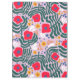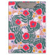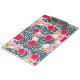This clipboard features a vibrant, playful floral pattern designed in a contemporary "folk art" or "scandi" style. Bold red poppies with dark blue centers. Deep forest-green fern-like leaves that curve around the primary flowers, creating a sense of movement. Small yellow five-petal flowers, tiny blue berries, and wispy white organic shapes that add brightness.