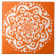 Dieses weiße Mandala liegt auf einem hellen, mohnfarbenen, orangefarbenen Hintergrund. Die Farbe ist hell und kreativ. Teil der Kylgh Mandala Kollektion. Dieses Design wird möglicherweise nicht so hell gedruckt, wie es online erscheint.