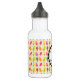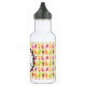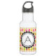 Eine Wasserflasche mit süßem Sommermuster mit Popsikeln und Eiscreme-Kegel in farbenfrohen, lebendigen Aquarellfarben. Schreiben Sie Ihr individuelles Monogramm in einen runden Rahmen mit einer skurrilen Blume.