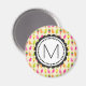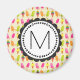 Ein Magnet mit süßem Sommermuster mit Popsikeln und Eiscreme-Kegel in bunten, lebendigen Wasserfarben. Schreiben Sie Ihr individuelles Monogramm in einen runden Rahmen mit einer skurrilen Blume.
