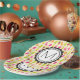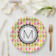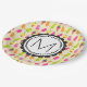 Papier Teller mit einem süßen sommerlichen Muster mit Popsikeln und Eiscreme-Kones in bunten, lebendigen Aquarellen. Schreiben Sie Ihr individuelles Monogramm in einen runden Rahmen mit einer skurrilen Blume.