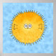 Ein porcupine / puffer Fischbild mit blauem gemustertem Hintergrund.
