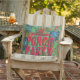 Ihr Name und die Worte "Porch Party" sind in tropischen Blume und Blätter auf geflochtenen Korbdrucken auf diesen Sommerkissen im Freien zu finden. PASSENDE Artikel in unserem Geschäft.