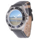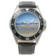 Herrenuhr aus Edelstahl mit schwarzem Lederarmband