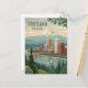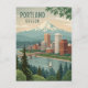 Bewundern Sie die Schönheit des Nordwestens der Pazifikregion mit dieser Postkarte mit der Skyline von Portland, der historischen Brücke und dem majestätischen Berghof im Hintergrund. Mit üppiger Vegetation, ruhigem Wasser und den berühmten Sehenswürdigkeiten der Stadt ist es der ideale Ort für Reisende, Sammler und Portland-Liebhaber.