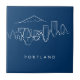 Dieses Ausrüstungsbeschreibungen eine Hand gezeichnete Skizze des Portlandskyline auf grünem Hintergrund.