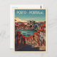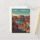 Feiern Sie mit dieser illustrierten Postkarte den pulsierenden Geist von Porto. Dieses Design mit seinen Kopfsteinpflasterstraßen, den roten Ziegeldächern und der berühmten Dom Luís I Bridge spiegelt das Wesen von Portugals historischer Flussstadt wider.