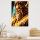 Ich fragte die KI, ein Portrait des griechischen Zeus zu machen, hier mit blondem Bart und goldenem Haar mit goldener Kleidung, er ist der Himmel und Donnergott in der antiken griechischen Religion. Das ist eine künstlerische KI.