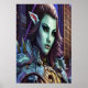 Ein Porträt einer blauen, wunderschönen Alien-Dame mit einer High-Tech-Rüstung, die in der Stadt stehend ist. Das ist eine künstlerische KI.