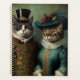 Portrait eines Katzenpaares in extravaganten Kleidern. Ein lustiger Planer für eine Katzenfrau oder einen Katzenjäger-Typ. Das gleiche Bild auf Vorder- und Rückseite. AI unterstützte Grafik, die mit kommerziellem Einsatz erworben wurde. Artwork: RavenPrintableDesign
