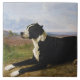 Dieses Design zeigt ein Gemälde von Rosa Bonheur (1822-1899), einer französischen Künstlerin, die am besten als Tiermalerin bekannt war. Es zeigt einen schönen Hund mit einem schwarz-weißen Mantel. Der Hund ist eine Mischung aus Mastiff und Labrador. Es liegt in einer ländlichen Landschaft. Der Hund ist selbstbewusst und entspannt.