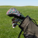 Portrait eines wunderschönen, skurrilen, rosa Drac Golf Headcover