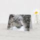 Ein naher Aufstieg eines Schneeleoparden im Profil während eines Schneesturms.