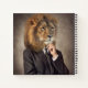 Dieses Design zeigt ein Portrait eines Löwen in einem Anzug und einer Krawatte.