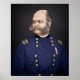 Dies ist ein farbiges Foto aus einem Vintagen, schwarz-weißen Bild von Major General Ambrose Burnside. Es erscheint auch im Kalender "Die Generäle bei Fredericksburg", der bei Zazzle erhältlich ist. Burnside war zu Beginn des Zivilen Krieges ein Oberst der Milizen und erreichte schließlich den Rang eines Generalmajor in der Gewerkschaft. Er war an mehreren Verlobungen beteiligt, darunter die erste Schlacht des Bullenlaufs, die Schlachten von Roanoke Island, New Bern, Antietam, Südberg, Fredericksburg, die Wildnis, Spotsylvania Court House, North Anna, Cold Harbour und der Krater (Petersburg). Nach dem Krieg wurde er Gouverneur von Rhode Island und später Senator der Vereinigten Staaten für Rhode Island. 1881 starb Burnside, als es noch Senator war, im Alter von 57 Jahren. Dies ist ein 3/4-Gesichtsportrait des Generals in einer blauen Uniform, mit goldenen Knöpfen, goldenen Insignien und schwarzem Hintergrund.