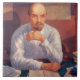 Dieses Design zeigt ein Vintages Gemälde des russischen Künstlers Kuzma Petrov-Vodkin (1878-1939). Es ist ein Porträt von Wladimir Lenin, dem Anführer des bolschewistischen Party, der 1917 die Kontrolle der russischen Regierung übernahm und ihn zum ersten Anführer der UdSSR (Gewerkschaft der Sozialistischen Sowjetrepubliken) machte. Wladimir Lenin ist hier mit einem weißen Shirt dargestellt, während er an einem Schreibtisch in seinem Büro sitzt; es sind Bücher auf dem Tisch vor ihm und Karten auf der Wand hinter ihm. Lenin sieht entschlossen und in Kontrolle aus.