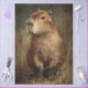 Eine detaillierte Abbildung einer Capybara, die in ihrem natürlichen Lebensraum unter Gras stehend ist.