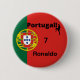 Portugiesischer Fußballspieler, der Punkto als Fußball verwendet, im Hintergrund die portugiesische Flagge. Anpassbar, ändern Sie Namen und Jerseynummer in Ihren Favoriten