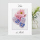 Individuelle Einladung für Babydusche in Portugiesisch. Im Inneren befinden sich die Details zum Party in Englisch und Portugiesisch. Hintern mit blauen Schmetterlingen und hellrosa Laien im Hintergrund. Matching Briefmarke zur Verfügung Convite personalizado para Chá de Bebé, com foto de botinhas de cor lavanda e borboletas azuis de crochet, e flores malmequeres cor de rosa no fundo. Detalhes sobre a festa dentro do cartão em Português e Inglês. Tambem há selos a condizer.