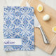 Portugiesische Fliesen, mediterranes Küchenhandtuch. Rustikal, boho, Vintage Fliesen, blau, botanisch. Bitte personalisieren Sie es mit Ihrem Namen.